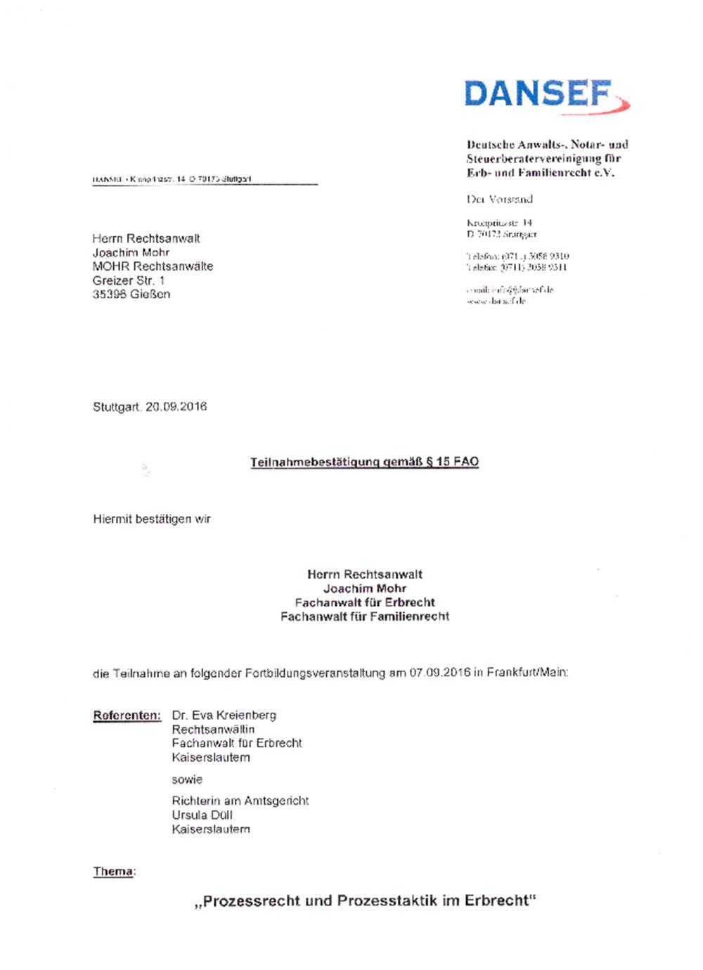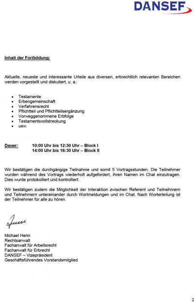 Fortbildungen Erbrecht